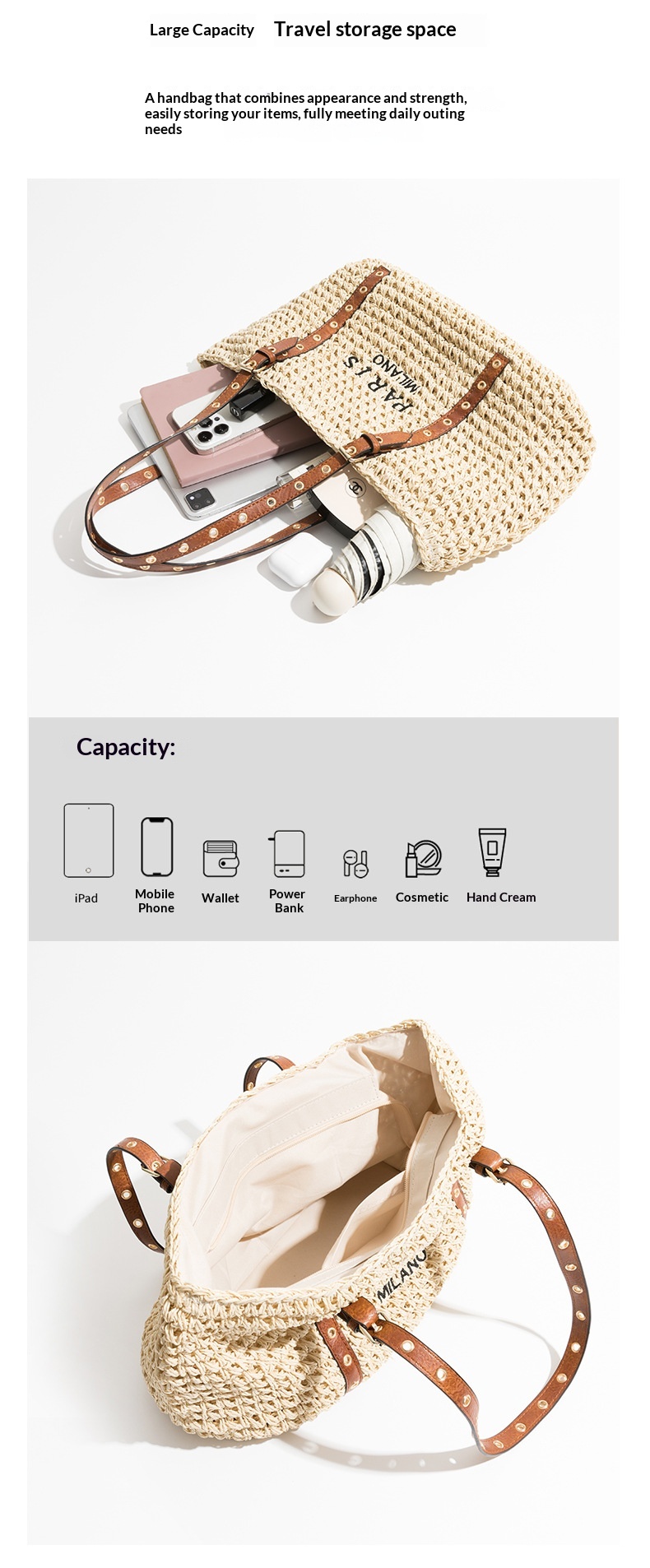 New Bohemian Style Minimalist Straw Bag For Beach And Seaside Vacations